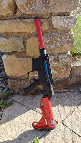 Lightweight, speedsoft-style rifle with full-polymer body.