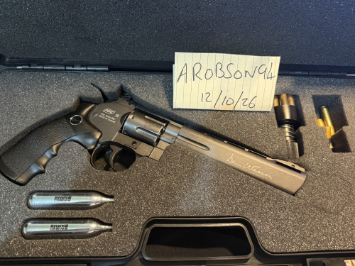 Lovely revolver, very heavy and fills the hand. Comes with the hard case which is £20 alone. 6 extra cartridges as well as the speedloader. Comes with 3x C02 canisters (1 is basically full in the gun as was used to test fire). Will post at buyers expense and will take paypal g&s or collection from Darlington, North East. Any questions, drop me a mesasge on here or for a more immediate reply text/whatsapp 07376 278 270