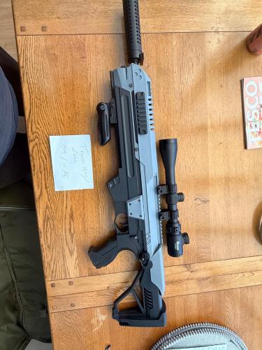 Also comes with scope, three magazines, a battery and spare front muzzle kit brand new in the bag. Will also include the original iron sight pair.
