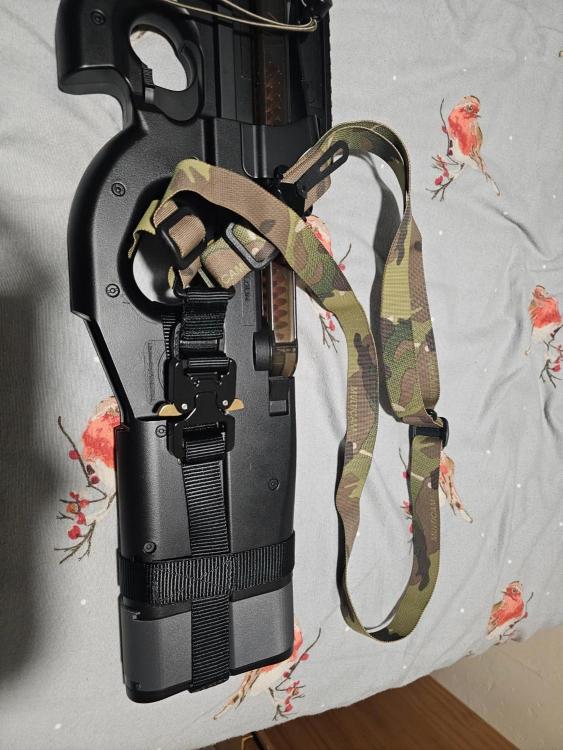 Hey all I wanted to make a post here to give a shout-out to Henry at Airsoft Tailoring - https://airsofttailoring.co.uk/ He makes some handmade accessories for Airsoft, and I picked up pretty much all of them from his store. I messaged him as some of the colours I was looking for were out of stock, but he said to order them anyway, and he would make them for me. Let me say these accessories are absolutely great quality, probs better than some I have got from airsoft shops. I will run through some items below as a lot of these are very nice for P90 owners. P90 3D Printer Stand This thing is so simple yet awesome all the same. IT allows me to safely display my P90 without worrying about marks from a gun rail or it falling over. It looks great on the side and shows off the look of the P90(I know it's like Marmite, but as a Stargate Fan, I love it) P90 Quick Release Sling and Strap combo I looked for a good strap for a while. I wanted one that sat nicely on the chest so I could rest the P90 there to pull a sidearm if needed. Most mounts like this are full harnesses. I already run a harness for my belt under a PC, so I didn't want another like that. This strap gave me that option with a quick-release Cobra buckle,too! Very Solid and I feel safe letting go of the RIF P90 Stock Extender A 3D-printed stock extender makes it a little bit nicer to shoulder the SMG if you are a bit taller, but also provides much-needed battery space. Slots on nicely and feels solid. My only minor gripe here is that the extender is grey and doesn't match the rest of the gun, but I may get a rubber butt stock cover anyway, so that doesn't really matter. Barrel Bag A small accessory, sure, but still needed at most sites. Very durable material and has a nice, long elastic too. All in all, If you have a P90 or just want to check out Henry's items, check out his store here: https://airsofttailoring.co.uk/. He has some cool items for P90s, but also some other bits too.