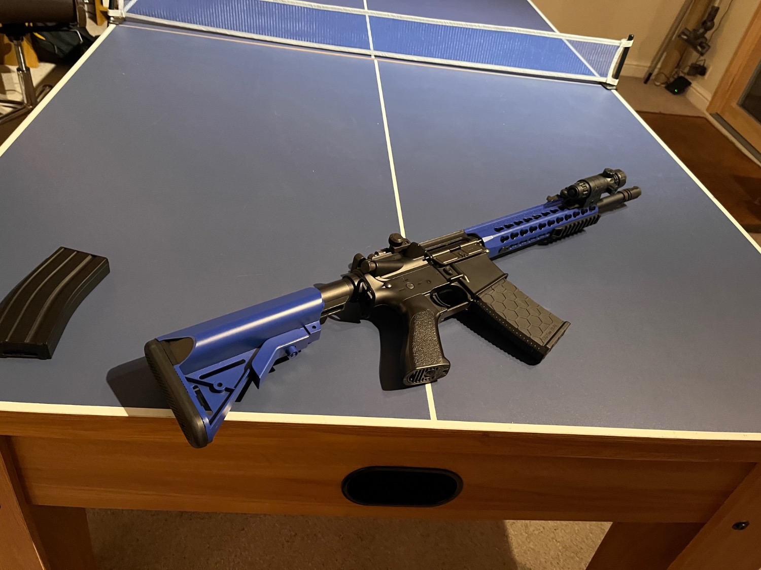 Hi, So about a year ago I got my Cyma CM515 in blue two tone and recently I have wanted to cover the blue to better be camouflaged when playing airsoft but I’m under 18 and using my dads airsoft gun am I allowed to without me or my dad having a UKARA license? I am planning on going to airsoft matches regularly after my school breaks up for summer (I have purchased a gun case to cover my airsoft gun whilst transporting to my local airsoft field) is this all okay? Also my field does allow under 18s
