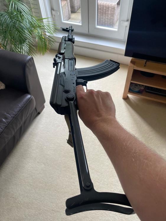 Different to my usual western ‘special’ forces load out I’ve gone classic bad guy with this very pretty TM AKS47 type 3 EBB. Second hand and upgraded with a Gate Astor, tightbore barrel, hop up, nub etc. It cycles lovely and smooth and looks stunning with just enough patina to make it look like it’s been used but looked after for decades. Off to play at a new site tomorrow so look forward to seeing how accurate it is and how it does on the chrono, but it’s an AK so full auto aimed at something over there will hopefully get a hit or 2.