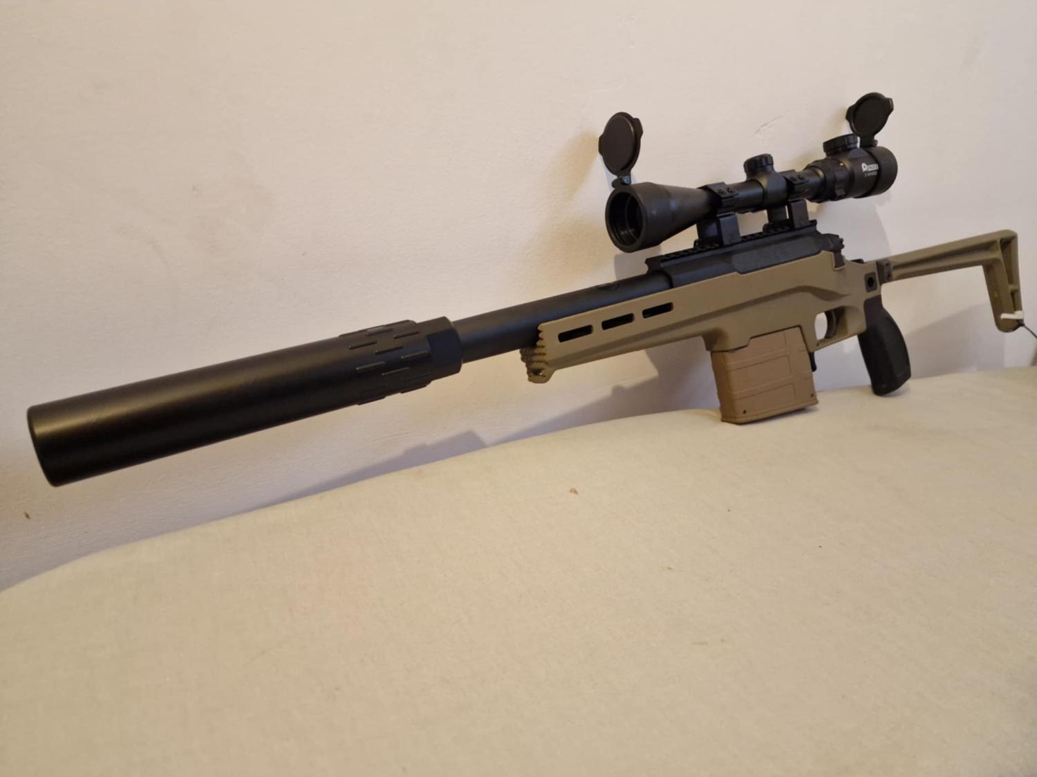 5. 3d Printed some suppressors, out of resin because I dont have a FDM printer yet but its just a bit of something. tried to colour match the chaos bronze of the handrail Trying to find an angled buffer tube/stock adapter for the specna arms prime with the ESA2 quick change spring, so if anyone knows of any STLs