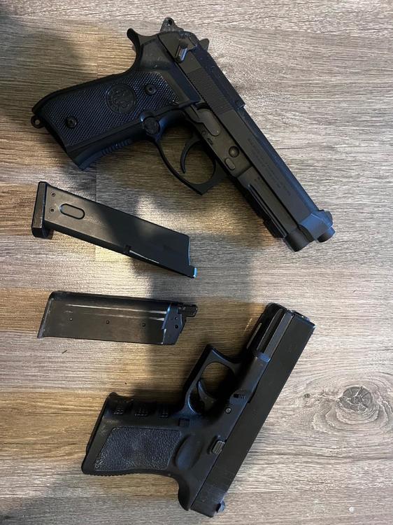 I’d say they are at least 15 years old. Both seem to be in good condition - no rust or anything. Worked perfectly when last used and been stored inside. The Beretta slides lovely and smoothly but the Glock one is a bit slow to recoil.