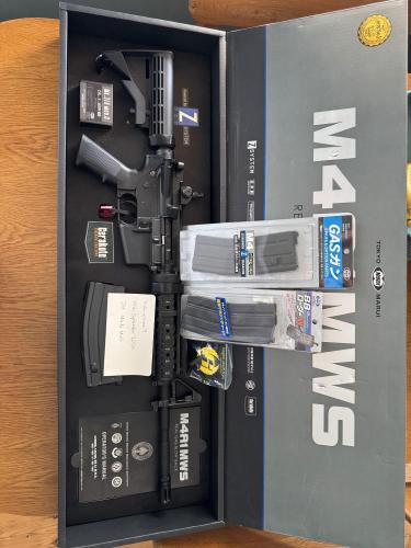 Update to previous ad - sold some items separate - see time stamped photo for included items. Selling as no longer used and unfortunately it’s just collecting dust. I’ve used it exactly twice, it’s in almost mint condition, although standard wear and tear apply. I don’t think it needs much introduction - it’s an incredible GBB rifle. Included: TM M4A1 MWS TM M4 Spare Magazine TM M4-style Quick Loader with 3D printed adapter Eagle6 Nozzle Return Spring (purchased as common fault but no signs of issue thus far). Collection preferred in Sussex - delivery can be arranged.