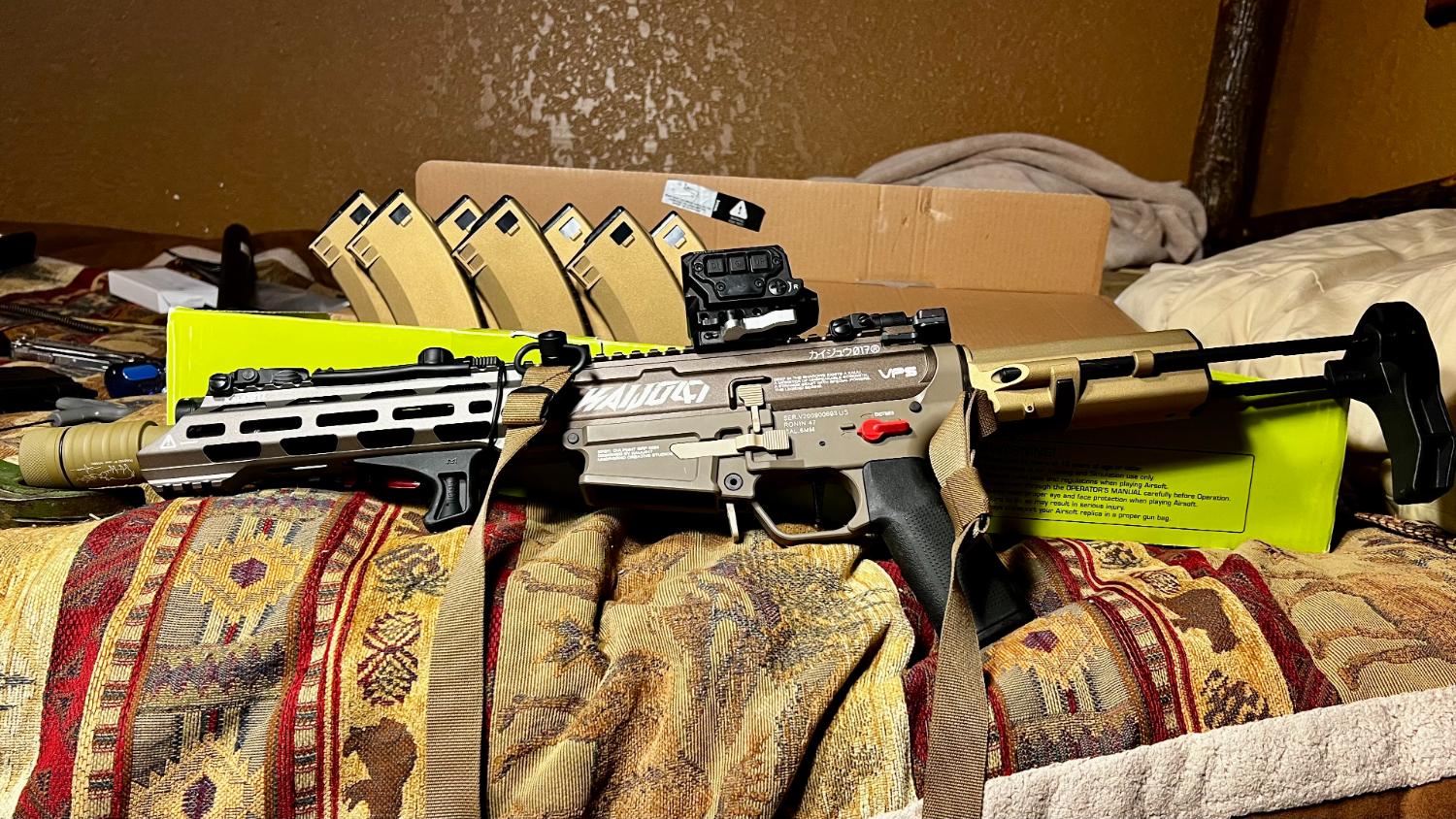 Done a few projects in the meantime. First, I *finally* found a Kaiju; the gun that originally got me into new-gen KWAs before the seller backed out and I ended up buying my Black Cherry TK45 a few years back. Well, now I have the Kaiju as well after all these years. It was a store display model too so its like new, and the seller had a set of mags cerakoted to match, so I have the full set of 7. I have also worked out all the kinks on my converted APS CAM870 mk2. Mods include a bunch of dremelling to take a HPA tap, cutting through a QD sling point to route the line, two MatchSavers mounted to the side of the new Magpul handguard for quick topping off, some modifications to fit both a APS shell-catcher and top rail, a +1 printed mag tube extension, and some smaller bits and pieces scattered throughout. I also have been working with biodegradable filaments to print short-lifespan shotshells that can be fired and left behind; the bio PETG works decently but I want to try the algae-based PLA as well. Here it is in action: IMG-7666.mov And the tons of shells Ive been printing and testing: