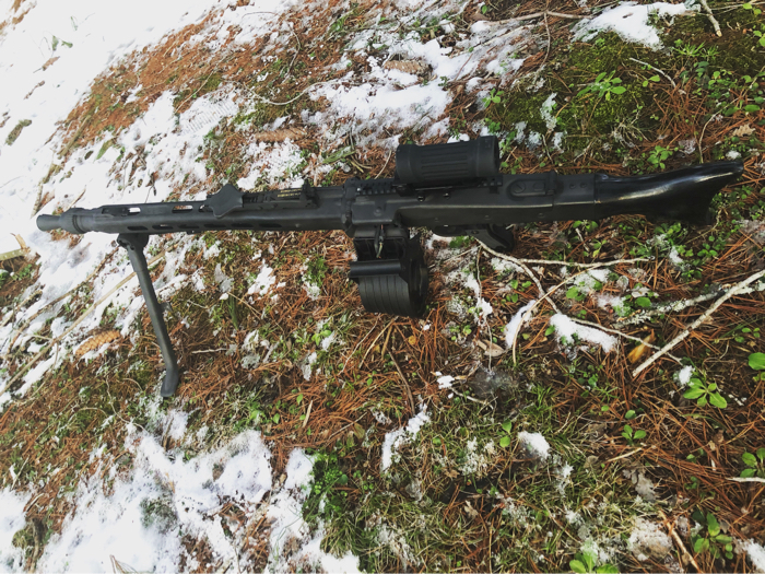 Just finished my second VSR-X build. VSR-X base, Maple Leaf MLC-S2 chassis, TRYBE 3-18x50 scope, Black Collar Arms Priapus Grip with brown grip tape, MidTen Mlok Bipod, Vortex Optics bubble level, Victoptics 1.93" scope mount, Novritsch A3 Amber leaf kit, Runcam2 4k 35mm, BrainExploder RunCam Picatinny mount, Maple Leaf MLC spare mag holder (faux magazine), Maple Leaf TDC top rail mount (TDC disabled since VSR-Xs dont have those), heavily-modified ActionArmy 50rnd VSR mags. Built for a lower power, lighter weight Scout Sniper kit than my other CSR-X, which shoots about 3.2J. This one’s more like 2.5J. All the leaves are somewhat-easily removable should I want to convert it to a more Urban build. Shoots BBs as heavy as .69gs, lowest it'll run on is about .46gs. I have a new Flecktarn uniform to pair with it for some lighter weight sniping; I tried lightweight kits for the first time last year and whew do the knees like it. Full kit should be done in about a week.