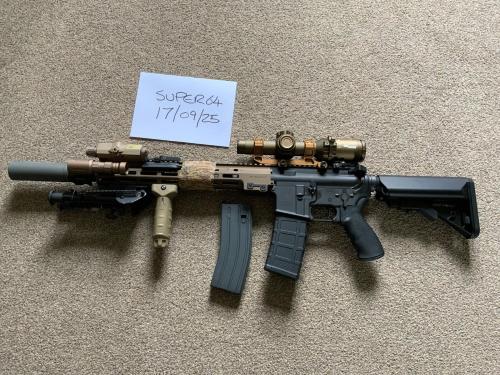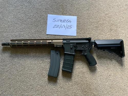 Accessories: 1 leak free Double Eagle Stanag magazine, Z-Parts steel outer barrel, BCM Gunfighter charging handle, ambi selector switch.