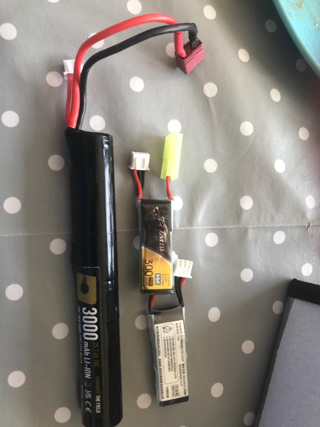 I put them in what’s left of the hand guard. I have 2 RC plane batteries which do over 350 rounds each with juice to spare so basically a hicap mag each.