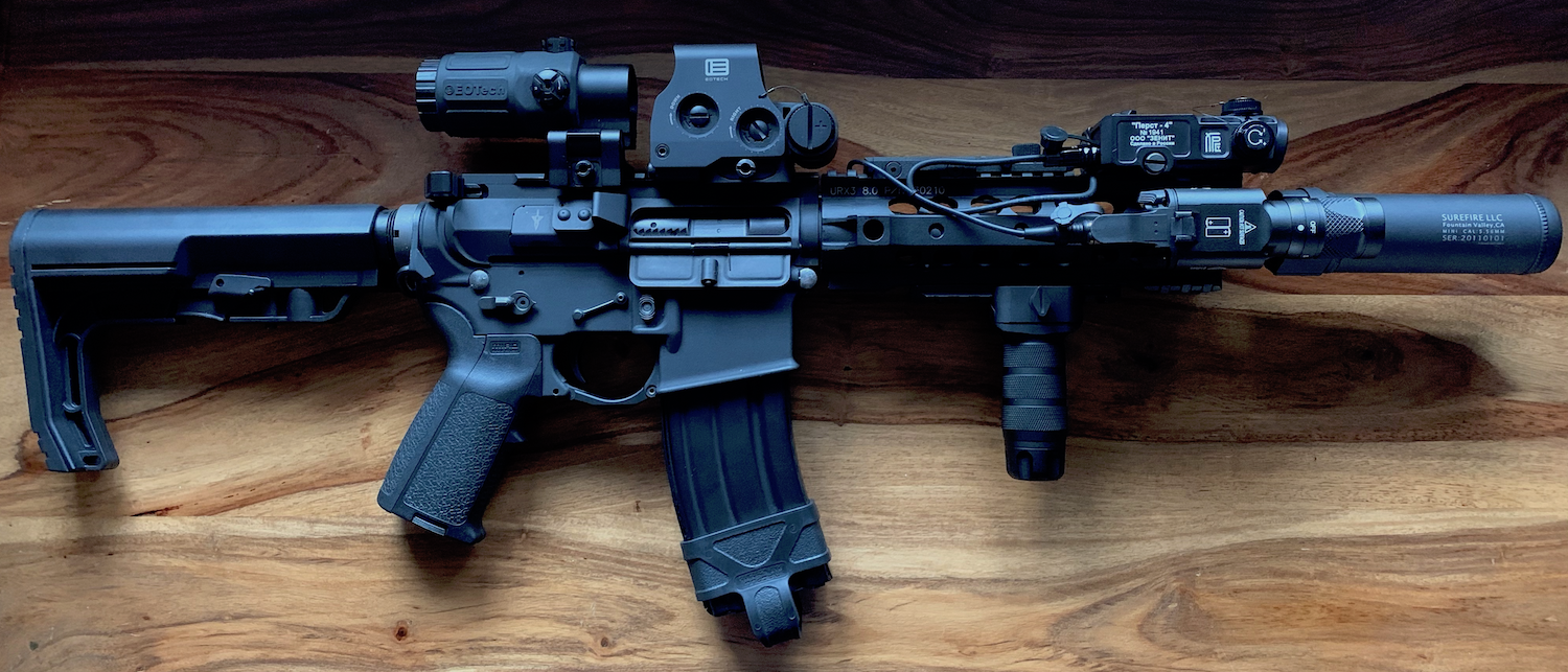 Tec-Spek Posted March 18, 2020 Posted March 18, 2020 Added a surefire X300v + pressure switch, Nice compact and bright enough, has strobe as well. Its a pistol light but I think serves on a rifle just perfect with the tail switch added. Pretty much done, covers all scenarios that I will use it in. I usually run it fully loaded with max attachments, sometimes just the eotech. Getting rid of the front and rear flip sights was strangely satisfying. DarkAssassin, GeorgePlaysAirsoft, Skara and 1 other 3 1