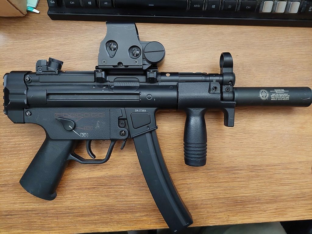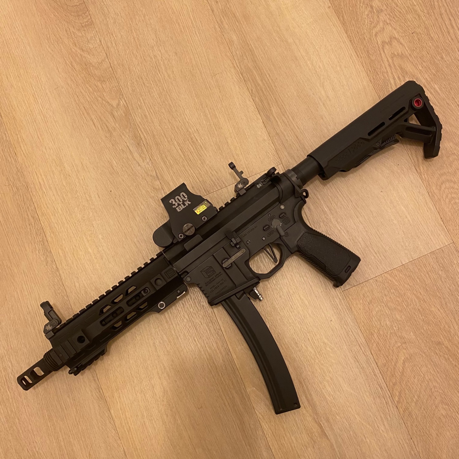 Impulse Posted February 28, 2023 Posted February 28, 2023 Since we were all discussing how wonderful the mp5k is to a new person, I thought I'd post mine now that the new buttplate had arrived. Will use a QD sling mount and a one-point sling done tight, so I can carry it around while sniping and just quickly unclip it when I need to use it. Things I still need for it are: - M-lok front - Picatinny-mounted folding stock - More batteries and rewire it to deans connectors Nick G, JustMark, Pinovic and 1 other 3 1