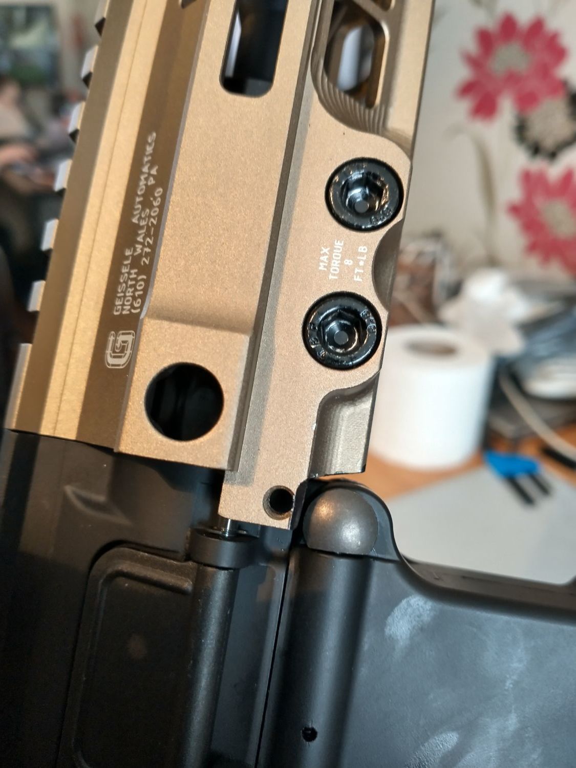GothicGhost Posted May 15, 2021 Posted May 15, 2021 Okay I got the rail on now but I had to file down area where the front take down pin makes contact and the area where the pin goes passed the anti rotation screw block or I could not connect the upper and lower together. Now I did try with my 7inch inner barrel but the fps was bit low with .25 from 200 to 236 FPS on 134a gas so i will wait till I get hpa so I can bump up the PSI aa little. So I added the stock inner barrel back and used extention barrel bit for now but I think the stock outer barrel would be shorter so I will change it again later.