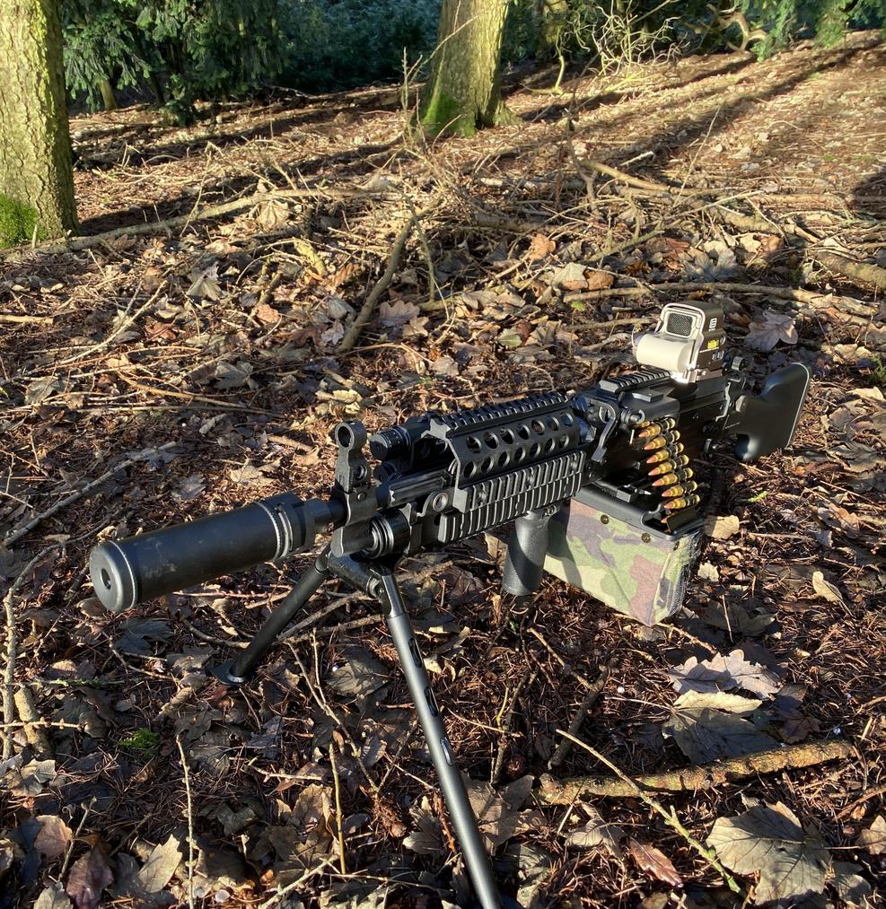 RMDavis Posted December 21, 2019 Posted December 21, 2019 Here's a quote from Clearwater Airsoft, a chap that is probably one of the first to get theirs in the UK:- Firstly, thanks again to the guys at Defcon Airsoft UK for 1. Getting them in so fast and 2. Letting me take over the shop on a Friday morning? So, just over a day and a half into owning this beast and here’s what I think: The firing and recoil as well as the shaking of the dummy cartridge belt is really just grin inducing. I’ve been using recoil guns - both Marui and KWA for years and the mk46 really is a step up. The build quality is the usual high standard we all expect and the safety features to prevent it being fired with either the feed tray open or the barrel removed are well thought out safety additions to protect players and the gun. Speaking of the barrel; it disengages with a clunk and glides out easily. The breach block, which is the part that locks into the receiver has got marked and scratched slightly around its periphery as it’s hit the inside of the rail when removing and installing the battery. but it isn’t a complaint just an observation. When it is re engaged once again you get a reassuring clunk and it is rock solid then. Clipping the feed tray cover down also has a solid click so there’s no mistaking if it’s locked or loose. Having to rack the charging handle to start shooting is great fun and it needs doing every 300 or so rounds as the feed stops from the mag. This gives some semblance of the real thing and is the recoil equivalent of changing box mags. A quick press of the bullet shaped button on top of the mag by the release lever engages the winding mech and in a few seconds you’re good to go again. I love how the mag feeds directly into the bottom of the gun so there’s no need for a tube going into the side that needs hiding. It also means removing the mag in safe zones is a lot easier so no need to leave it attached and stick a gun sock on your muzzle. The hop unit is a cinch to access and it’s actually a useable size for people with anything bigger than Jeremy Beadles right hand. It happily adjusted to easily hop 0.28g BB’s. I don’t have any heavier to hand and in all fairness at the sub 1J power level it would be detrimental to the experience anyway. Power wise this definitely benefits from the use of as large a capacity battery as you can fit in the space. I recommend the Titan Power 7.4v 2600mah stick as that goes in easy as pie and powers it beautifully even with the extra load generated by the hoooge recoil weight. I would say that you need to make sure it’s well charged though for the maximum benefit. RoF is around 11rps so just slightly less than the real mk46. If you want 1200rpm fire rates a la mg42 then you’re going to be disappointed however. This is gonna be great for sustained bursts to suppress your opponents - y’know as it was meant for in real life??♂️ I’m just trying to think of any negatives and I am really coming up empty. One thing I might try once I have some money again (that’s gonna be a while though for some unfathomable reason!??) is to fit the collapsible stock often seen on mk46’s. There is no electrical or mechanical connections going from the receivers to the stock so I don’t think it is essential to the firing of the gun. Knock out two pins and the stock comes off. That’s a project for next year - or until some aftermarket support is seen in the market and I doubt that it’ll be a long wait for that to happen. Monday will see some more testing and videos so stay tuned to this page for more. ?? Check him out either on Facebook or Instagram, he's a top bloke! He's had a couple of people ask him regarding range and he responded with these comments via Facebook:-! It’s very nice to shoot. I’m not concerned about range. It was still going nice and flat at the end of my garden that’s 27m. Fps is around 290 with 0.2g BB’s but I use 0.28’s and the hop lifted them fine. RoF is about 11rps. I haven’t been able to do any meaningful range testing later as my garden is only 27m long. Monday is when it’ll get a work out over 50m plus so stay tuned for the video?? It doesn't really matter i suppose because you all think it's crap anyway! ? Regardless, I'm bloody excited for mine to arrive and will answer any and all questions etc when I get my hands on it, if you're interested of course!