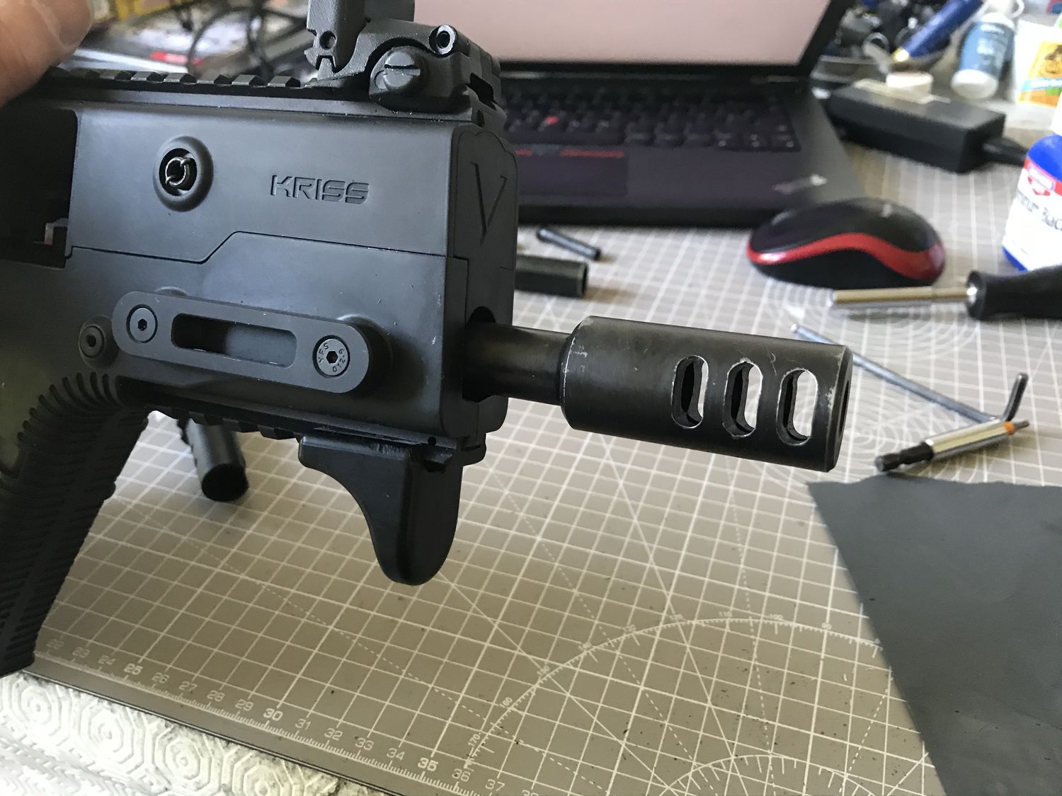 Guest Posted April 20, 2020 Posted April 20, 2020 A tiny thing for lockdown boredom. I got fed up with using an adapter, so I cut a 14mm ccw thread on my KWA Vector. It’s normally 16mm c/w