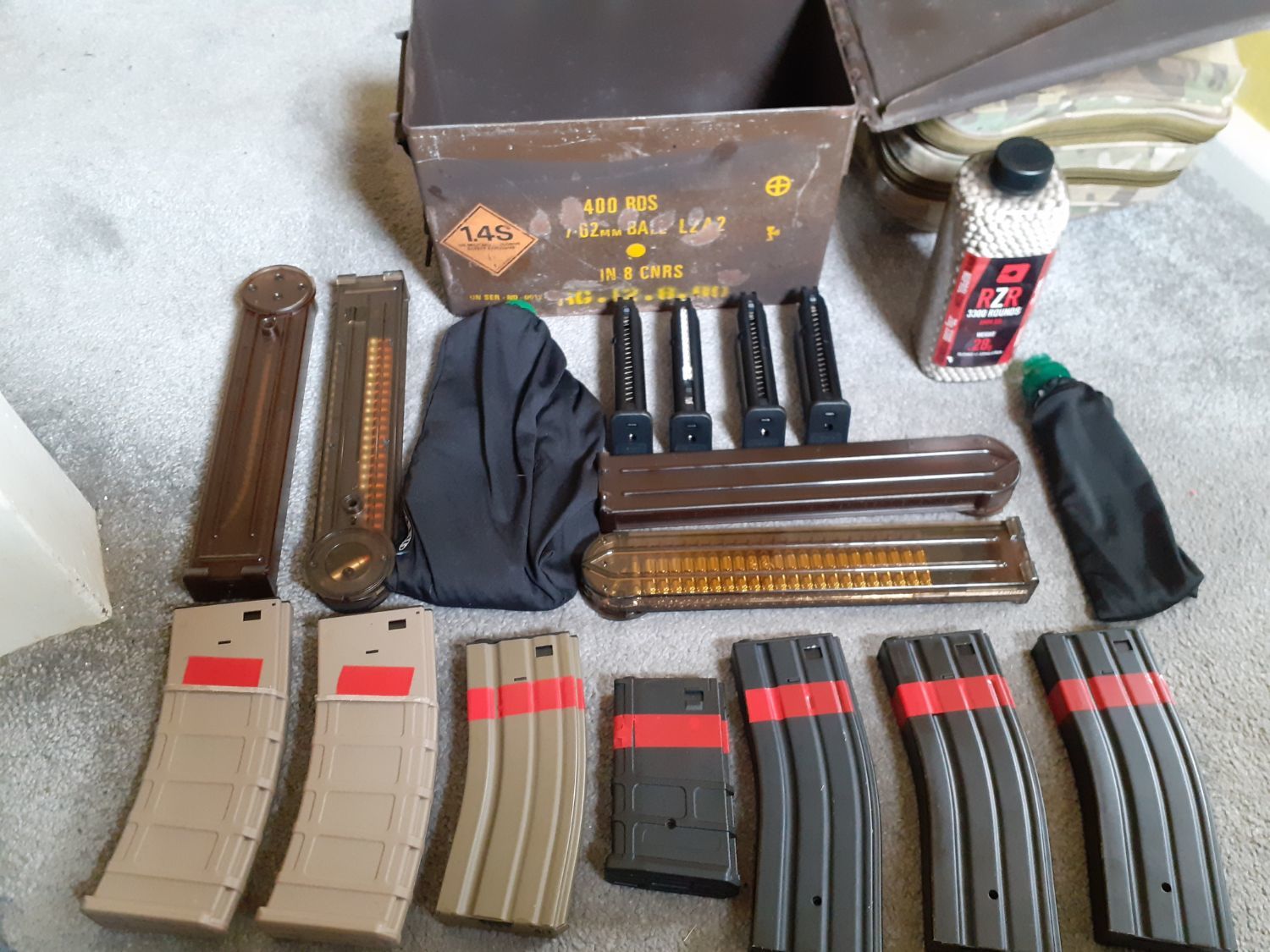 Floperator Posted May 15, 2022 Posted May 15, 2022 Just doing some quality-of-life tinkering before next week's game. Found an old ammo tin my dad used for fishing stuff, bit of a clean and spray here and there and it's now my new mag carrier, with space for oodles of mags and bbs. Also made a couple of BB bags out of some soft goggle cases, cable ties and water bottles, they work great for carrying and dispensing BBs in the field. Enid_Puceflange and Jacob Wright 1 1