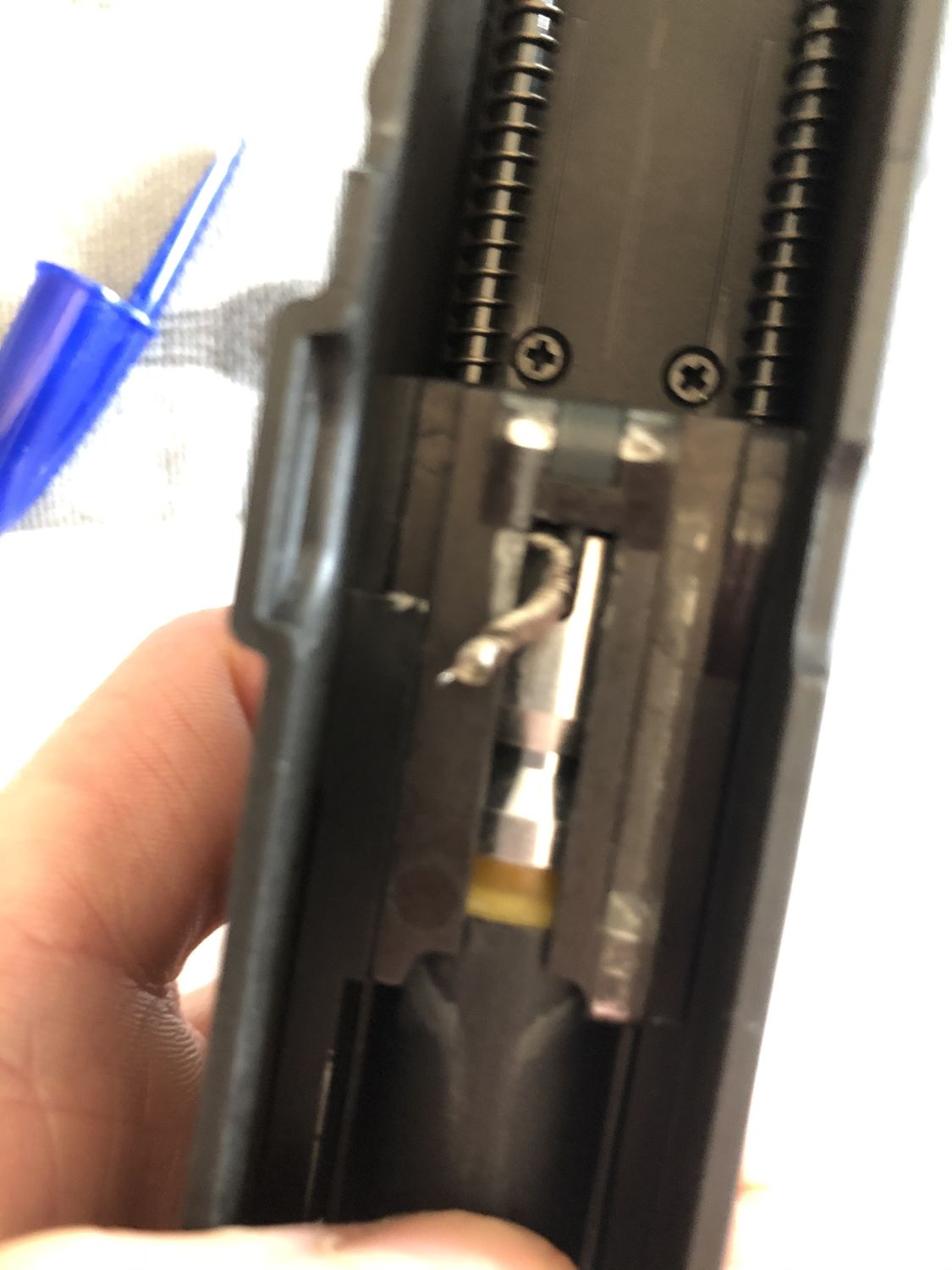EDcase Posted May 18, 2020 Posted May 18, 2020 If returning isn't an option... (I don't blame you if it came from East) First thing would be to disassemble it and find out what part that is. This is for KSC but might help http://www.kwa.com.hk/parts/index.php?factory=ksc&product=VZ 61 SKORPION&type=gbb_smg&title=main&image=ksc_VZ61_main.jpg Or THIS one