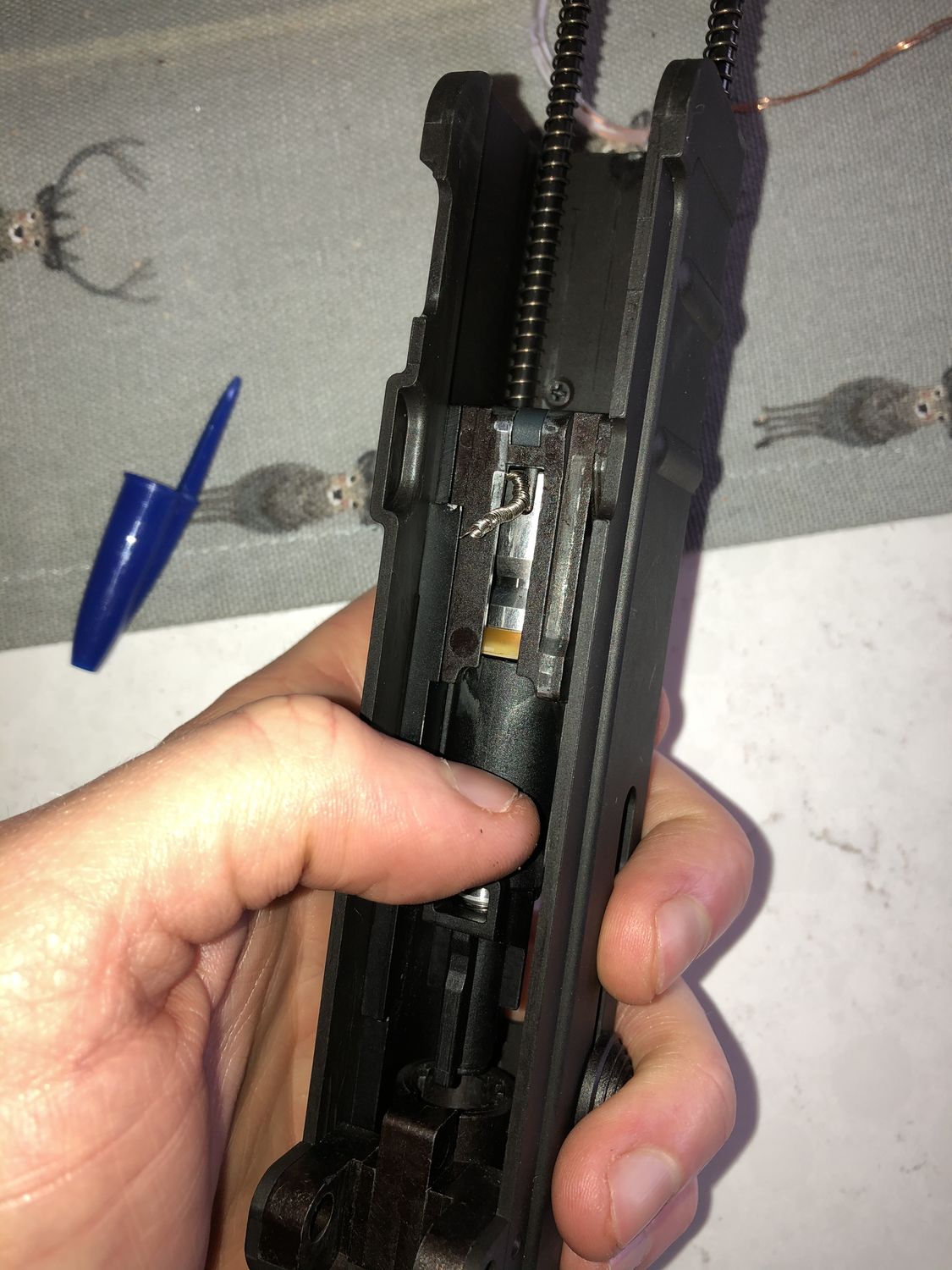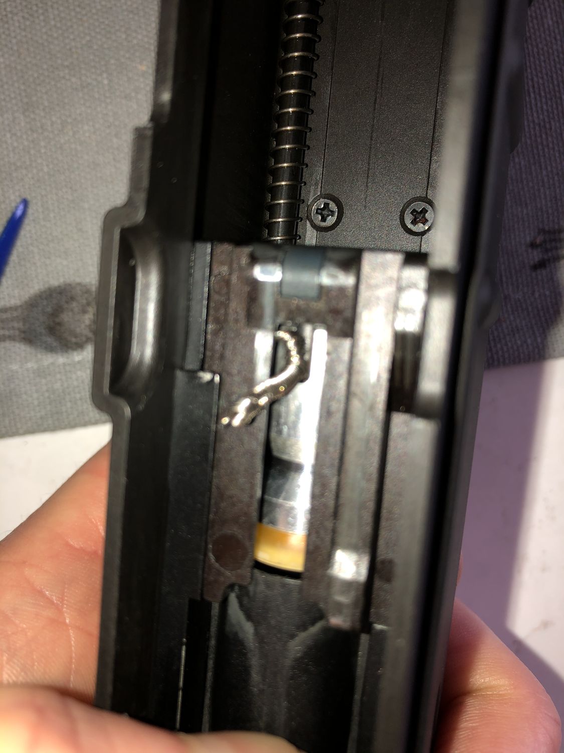 SilverGekko Posted May 18, 2020 Posted May 18, 2020 Hey everyone, Hoping someone can help me! Just got my new VZ61 delivered, ran a couple of mags through it and it stopped cycling the bolt after every shot. I opened it up and there’s a tiny spring broken - see pics Anyone have any advice?
