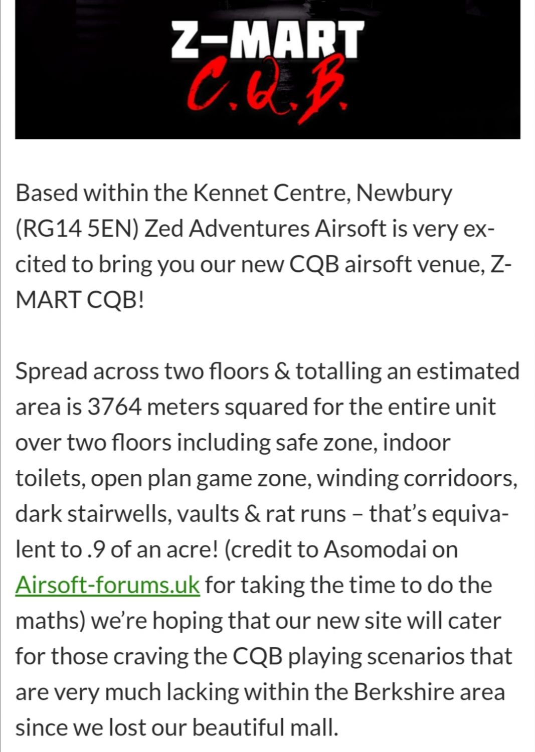 EvilMonkee Posted September 8, 2020 Posted September 8, 2020 As keen as I am for a Mall Mk2 I think we all need to acknowledge that the gaming experience will not be the same in anyway (bar the long briefs ) The site looks really open and will probably require a lot of set dressing to make it into a CQB arena. I imagine in fullness of time it being something akin to some of the American style CQB arenas that are built within a warehouse complex. Will be interesting to see how it develops. I will be waiting out for the reports back.
