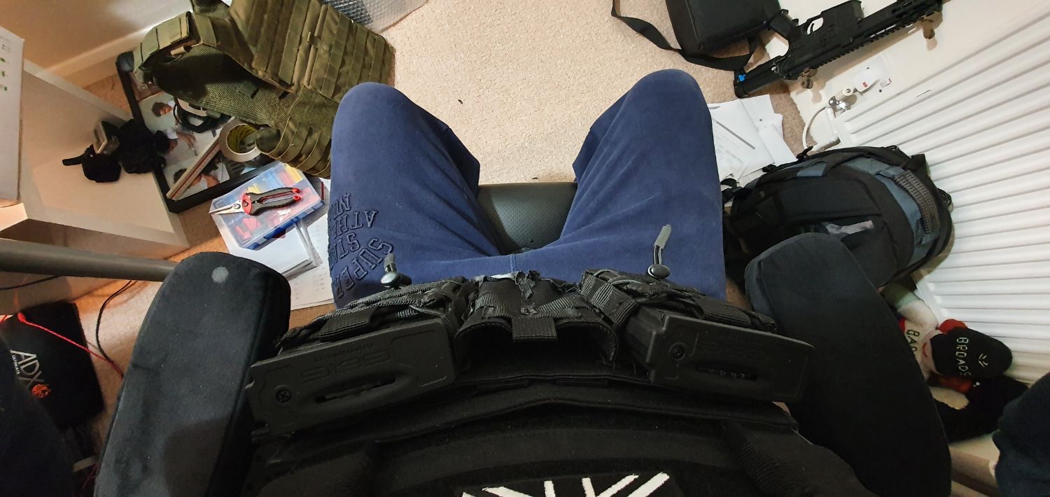 Barny Posted November 27, 2020 Author Posted November 27, 2020 A little update..... I didnt get round to buying anything from the above thread. I had one of these kicking around, Viper mag rig So i got bored one night and found out that with a bit of slack the 7.62's would fit. But I hated all the bungee cord and the extra pistol pouches too so I got busy and chopped the mag pouches off, restrung the main pouches and voila! It now looks like this Sits nice an flush to my chest and also doesnt hardly affect the gun when slung in fromt of me. Anotjher view Another view The centre pouch is fairly rigid, would prolly fit an M4 in there at a a guess I also bought these The G2H G&G 400rnd mags are fairly small and they fit fine in all configurations The Skorpion style ones ive not fitted yet as i want to trial the mag rig 1st Cheepy fast mags on the belt, with the wings on to aid refitting
