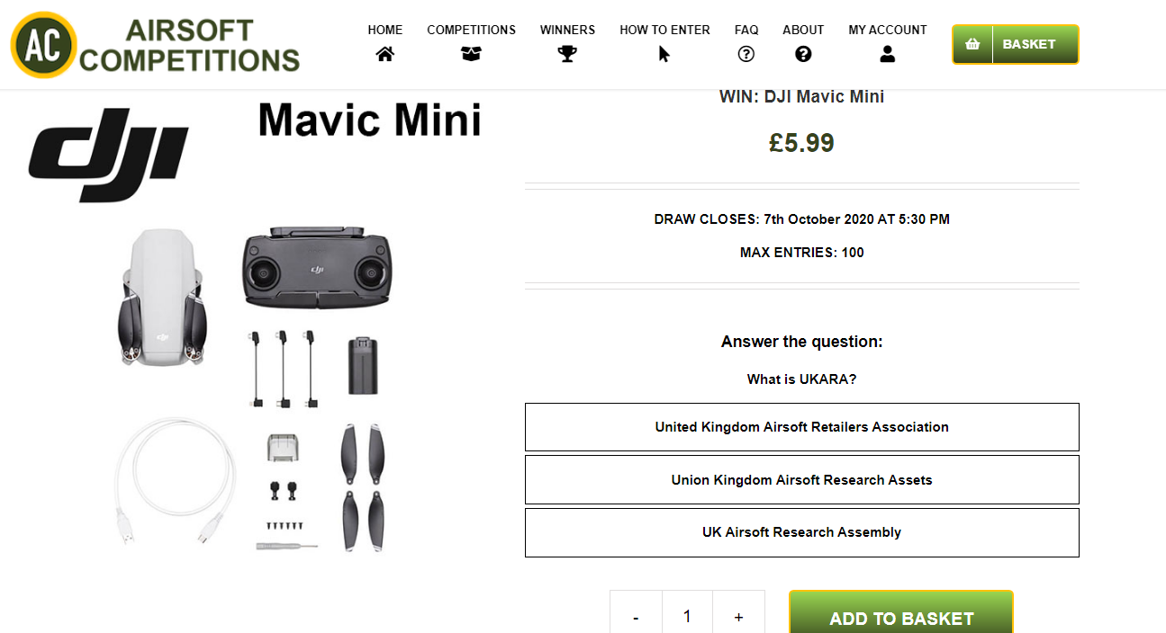 Tommikka Posted October 7, 2020 Posted October 7, 2020 11 minutes ago, snuff said: Airsoft competitions,the logo above the froum browse option. That’s a banner advert, so the level of involvement or endorsement by the forum may vary. From what they (Currently) have on the page it closes when the maximum tickets are sold, and is drawn later this evening In reality its a sale, managed as a ‘prize draw’ with ‘no purchase necessary’ in the footnotes. With 75 tickets at £5.99 they have just short of £450 for a £350 drone, and £599 if all tickets are sold