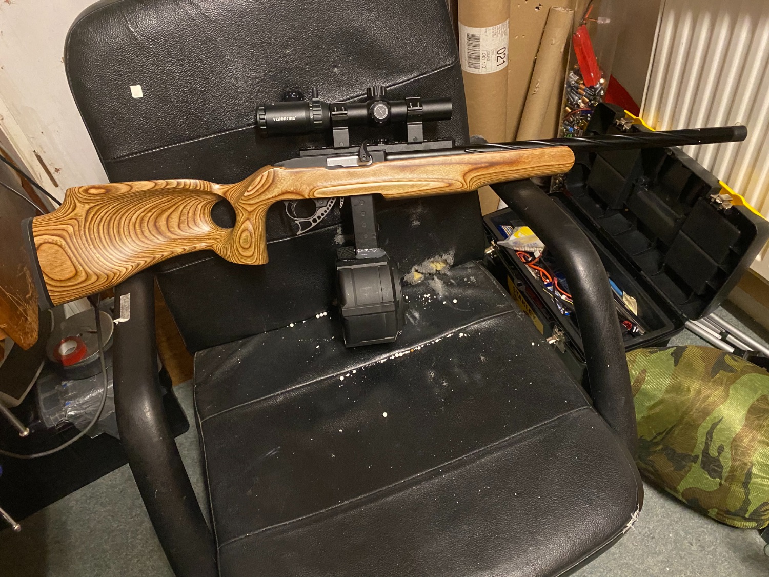 Alimcd Posted October 16, 2021 Author Posted October 16, 2021 (edited) It’s got a sibling now thanks to @Cromulon1994 The Muzzelite is bang on 1.8j@100psi and semi auto locked, the Boyd has the Bolt action bolt in and is tuned to 2.32j@100psi Had to get creative with the Muzzelite, it’s a real stock for a normal 10/22, and the trigger reset distance is quite different. I took a couple of mm of material off the front of the trigger to give it a smidge more travel and now the sear can reset each time. Looking forwards to hearing the whispers in the queue for chrono trying to figure out what this is! Edit - thanks autocorrect Edited October 16, 2021 by Alimcd