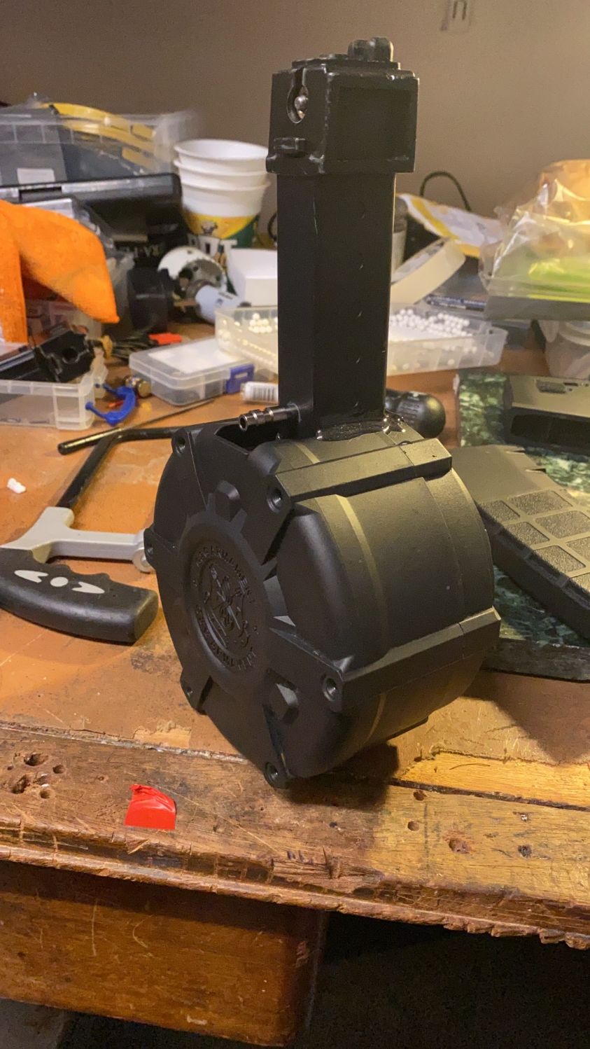 Alimcd Posted October 15, 2021 Author Posted October 15, 2021 The harshest criticism can be the most useful! After it was pointed out that my gun and my drum mag were not technically in the same postcode I decided to go all McGuyver. Some hack sawing and sealing later and it doesn’t swing around like a 2500rd pendulum under my gun anymore Tackle 1