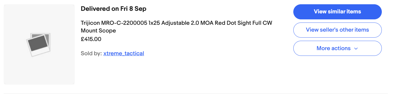 bladerunner168 Posted August 13, 2024 Posted August 13, 2024 Another happy customer to vouch for @Xtreme Tactical. Again, I have no affiliation with the company whatsoever. Put simply, I've had no problems with this company, every time I have ordered from them, service has been on point. The products I bought were genuine and items arrived on time as advertised. I don't know or understand the beef that occured earlier on in this thread, I'm simply here to say the Xtreme Tactical is a reliable seller. I've attached some orders that I could find, (eBay records only goes back to 2017 for me). The reason why there are no further orders after 2019 is because I left the UK. For full transparancy, @blobface and I are on the same WhatsApp group and I also came here to speak up after he DM me. Let's get real, there are much greater opportunities to benefit from scams than "pretending" to be a RS optics/accessories seller. RS gear is such a niche market in the UK, we need to really support the good and reliable sellers like @Xtreme Tactical. Xtreme Tactical and blobface 1 1