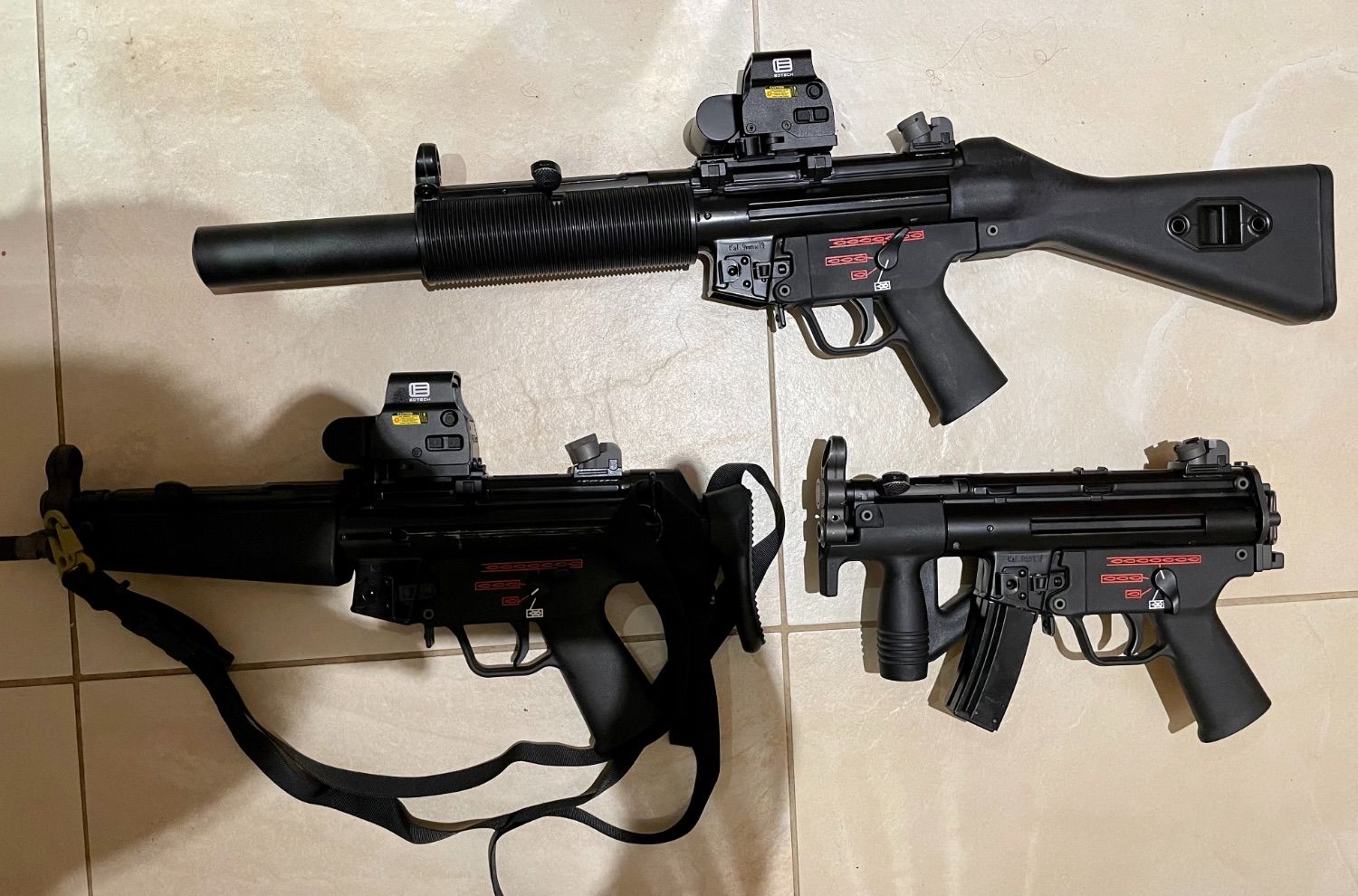 SSPKali Posted August 29, 2021 Posted August 29, 2021 6 hours ago, Cyberlawyer said: The high level claw mount that TM did was a copy of a RS item. The real ones are now pretty affordable as they have fallen out use in favour of the lower profile screw down mounts due to their weight and the fact that the newer style mounts give you a much lower height over bore, so a noticeably smaller shift in zero at close ranges. I often see them going for not much money at airsoft sales or on various selling sites. However unless you are going for an authentic retro build I wouldn't bother. I have a pair of WE apaches that I run eotech's on and I just used the following from Amazon, they work well are as cheep as chips and you can get it delivered free next day if you have Amazon Prime. https://www.amazon.co.uk/ToopMount-Tactical-Profile-Aluminum-Picatinny/dp/B0888HPMNS/ref=dp_prsubs_3?pd_rd_i=B0888HPMNS&psc=1 I have found that the MP5 doesn't need a high mount sight due to the drop on the stock (even with face-pro) unlike the in-line M4 style. Can't imagine using a red dot on a high mount even with my giraffe neck! Also....lovely collection there! GBBs?