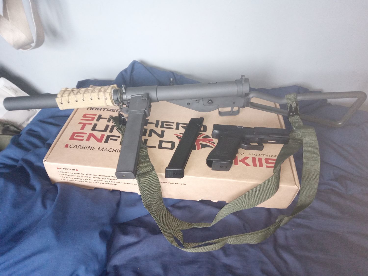IronCobra85 Posted October 13, 2021 Posted October 13, 2021 So after recieving a bit of money and going against all advice offered in the New Players and Arrivals thread i went ahead and purchased a NE STEN Mk2(S). I also purchased a WE G18C because i had a go with one and just found it incredibly fun (dont judge me haha). Anyway the STEN is a absolutely lovely but heavy piece of kit. The kick the recoil gives is actually quite a lot more than expected which suprised me. After a bit of faffing around i figured out how to load my one mag with a speed loader i went about setting the bolt stop feature up which added to realism which will add more bonus points in my honest opinion. I have a bit of a kink for historical WW2 weapons and am waiting on the day when a Lee Enfield gets released. I'd love put together a British WW2 loadout, although maybe not the uniform (the 37 webbing would do), however the Webley having no hop up and being supposedly over 400fps is a no go and the Browning has faults and bad reviews (although supposedly the 2020/2021 one is better). This leaves me with the 1911 as an option which will probably be purchased later rather than sooner. As you can see from the pics i had to bodge a front sling mount with paracord and a heavy duty key ring but it works and is rock solid. I went with a three point sling as after trying a two point i found it impossible to transition shoulders and with the 3 point its just easier although not as quick as a one point. A one point sling would be pretty impossible with this STEN as it swinging about and catching me in the nuts would absolutely fudging kill. I recently got a tax rebate and am waiting for the mags to be restocked at AirsoftWorld, once i have a minimum of five i'll take it to a skirmish but until then its just sitting there looking pretty. Ohhh another thing, NE's customer service is exceptional, i had a few problems with the mag and NE are sending me replacements (and spare extra parts for the future) free of charge from Taiwan (hopefully the planned Chinese invasion of Taiwan doesn't happen soon and put a halt to Taiwanese exports) which is some of the best customer service ive experienced. I'll update this thread when i actually field it and give more impressions but as a bit of retail therapy from an absolute shit year of dickhead employers its really cheared me up.