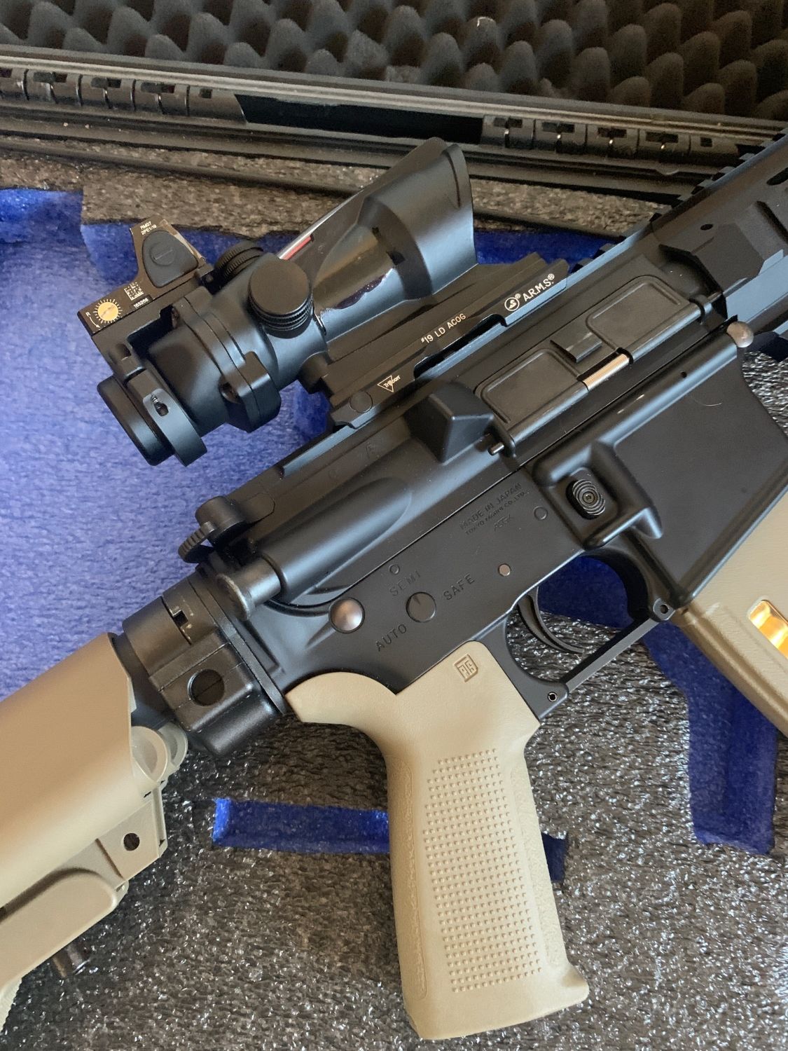 GStevo80 Posted November 5, 2021 Posted November 5, 2021 Im excited to have this together and my Mrs just looks worried when I try to show her - more than understanding how awesome I think it is lol. (Which is fair enough) It’s was a TM Sopmod, I made it into a CQBR and now (my impression) of an L119A2 Angry Gun rail and flash hider PTS grip MK18 TM Stock RS Magpul Angle grip Angry gun charging handle catch E6 M110 spring Prom Piston Prom Piston head E6 recoil spring Prom 6.03 inner Prom Purple Rubber Prom Flat nub Action Army high torque Motor ACOG upgraded with Gucci bits from a very helpful member on AF U.K. ?? I don’t have the CC lower, I honestly just can’t face getting the gearbox out again, I had to do it about 3 times because I had to learn as I went. when something explodes and I need to replace the gears or whatever then I’ll burn some more cash doing that last bit, but for now just want to enjoy using it. I get zero single shot lockup, this was either the new motor or Titan battery, did both at once after lots of single shot lockup, so it was one of those or a combination. I did not need the MOSFET. Not looking for anything other than just showing off because I’m very very happy and can’t wait to use it. yes, it is a lot of mags. No I cannot ever use them all