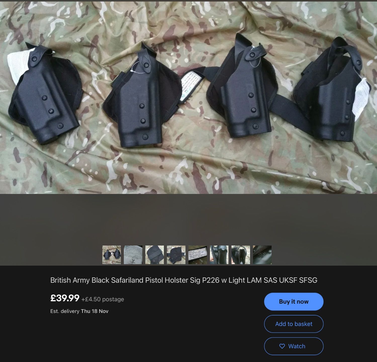 Moderators Tackle Posted November 15, 2021 Moderators Posted November 15, 2021 27 minutes ago, Rogerborg said: Huh, so they are. Mock-Glock 17 with some rando light for me. https://www.tactical-kit.co.uk/fobus-glock-17-light-bearing-holster-rbt17-12799-p.asp or possibly https://www.tactical-clothing.co.uk/bags-c390/holsters-c396/fobus-tactical-holster-kit-for-glock-17-22-31-with-lighthouse-ii-iii-p11384 Paddles though, all the tacticool kids use molle. https://www.ebay.co.uk/itm/154293238345?_trkparms=amclksrc%3DITM%26aid%3D111001%26algo%3DREC.SEED%26ao%3D1%26asc%3D20160908105057%26meid%3D0d693415c396430080f4343dc7048f0c%26pid%3D100675%26rk%3D1%26rkt%3D15%26sd%3D154293238345%26itm%3D154293238345%26pmt%3D0%26noa%3D1%26pg%3D2380057&_trksid=p2380057.c100675.m4236&_trkparms=pageci%3A680e24ff-4653-11ec-b6cd-3e573866fe17|parentrq%3A254ec23517d0ab97d1c32073fffaa344|iid%3A1