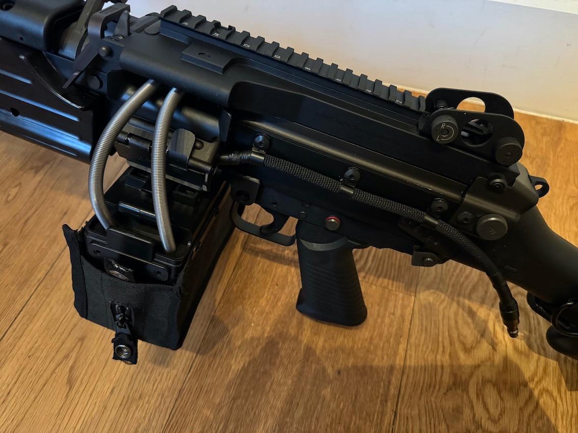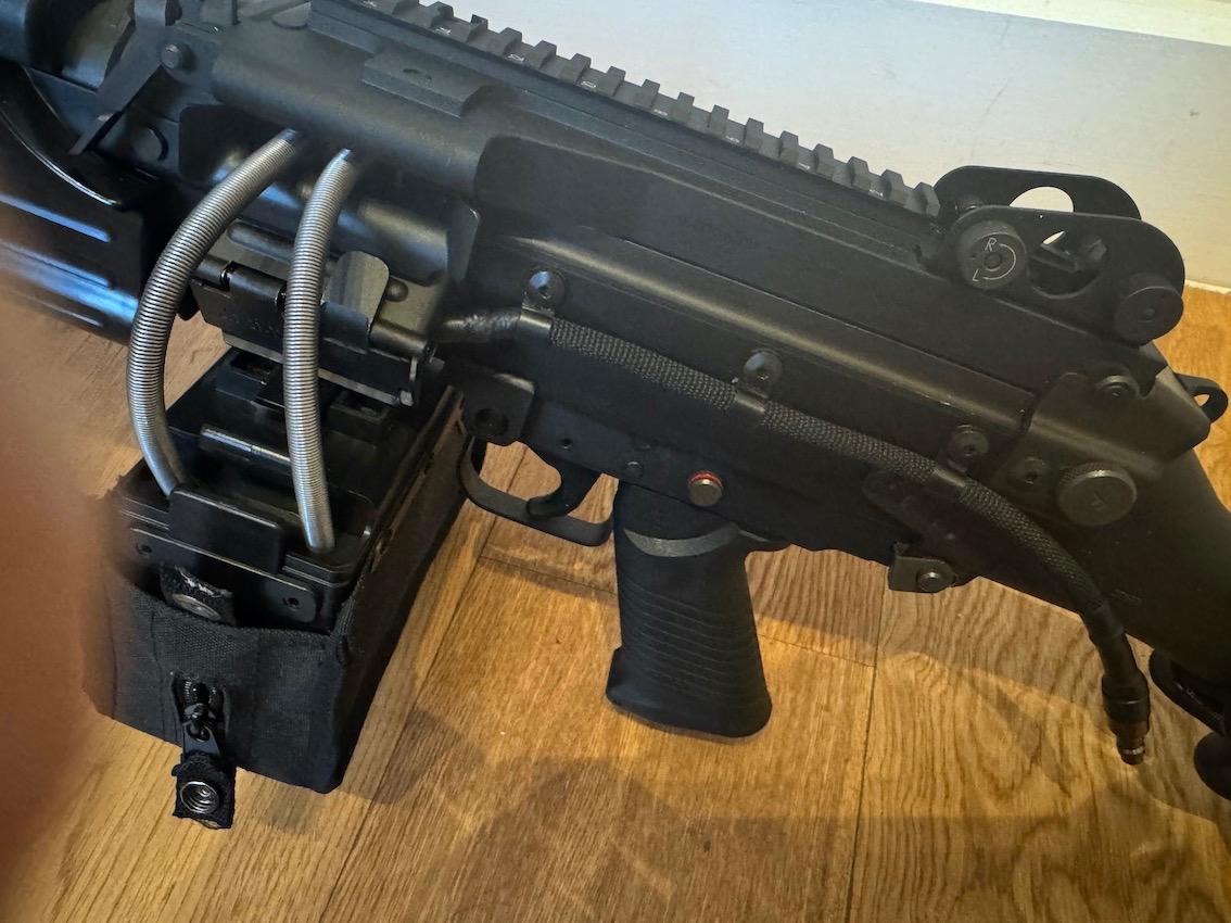 Zooankski Posted September 17 Posted September 17 (edited) Never had a line catch tbh and run 2 MTW's also so it just made sense to go this way. Just takes careful planning and routing of the line on your kit. Mine comes from a sack on the rear of my plate carrier, over the shoulder (all through Molly tabs) and down the front. This leaves a loop tucked close in to the body and works well, even in a prone position. I did add 0ne more line support clip to the third internal rail support screw to the set up but no other changes. Next issue is how to fix my bullet belt over the box mag feed and mic springs 😀 I was going to add a microswitch to the trigger but the mic works perfectly for now routed in the spring, as I suspect the metal amplifies the sound. I meant to add originally that the slightly bunched area as line enters the Maxwell is actually just the heatshrink over some stainless metal braid protecting the line. I Ali blacked the line hole in the mag well which now looks like it was factory and the original mag fits perfectly and operates fine so all removable. Edited September 17 by Zooankski Nick G 1