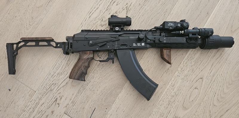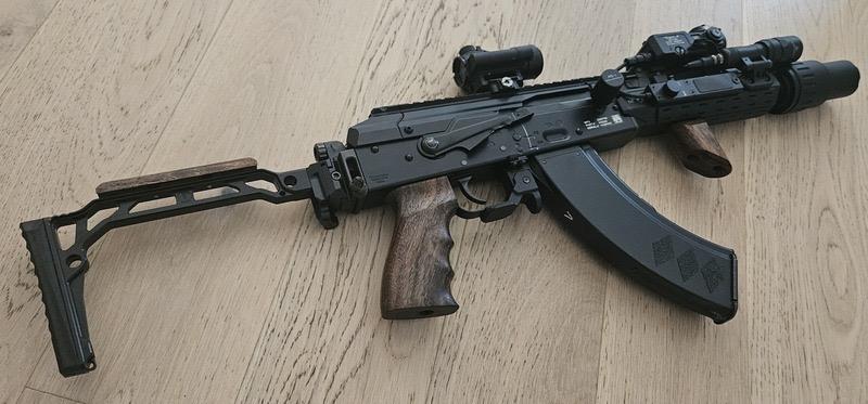 Popular Post zizivert Posted August 10 Popular Post Posted August 10 (edited) The last version of my akx. I replaced the laylax stock for the JMAC SS8-RP + JMAC folding system and added handcrafted wood parts: rizer, pistol grip and front grip (copy of the zenitco rk-6l). Edited August 11 by zizivert HZR13, ButcherBill, LMKipper and 2 others 4 1