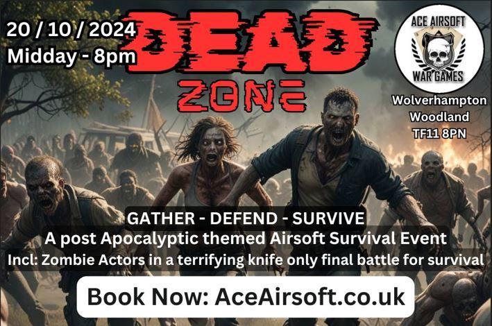 Ace Airsoft War Games Posted October 8, 2024 Posted October 8, 2024 Brace yourself!! We've joined forces with Events2scare again this October for our special immersive and theatrical Halloween 2024 Airsoft Game. NB: This will be an awesome fun Zombie Apocalypse themed event - With Zombie Actors involved and an amazing final scary battle for survival. GATES OPEN AT MIDDAY - GAMES END 8PM - Check out the full info, games, maps and BOOK BELOW. https://aceairsoft.co.uk/dead-zone.html See you there for the scare!!!