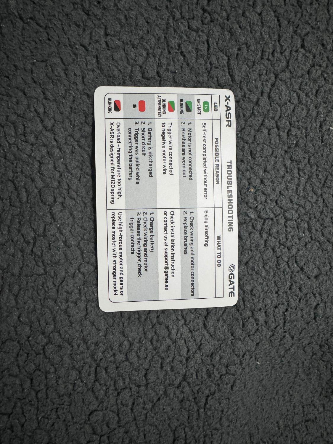 Alfie_0 Posted September 16 Posted September 16 Evening all, First time doing any tech work and have installed a new Solink 28k lite plus brushless motor and 13:1 gears into my specna edge. The old motor, when tested, works fine, spins freely even by hand etc. The new motor shows a solid red light on the x-asr mosfet and does not spin, will not spin freely by hand either, has a sort of regular interval clunk/click as you turn it. Not sure if that is normal or not. Have seen one post from a guy on reddit (https://www.reddit.com/r/airsoft/comments/nt5kt2/issue_motor_is_causing_a_supposed_short_circuit/) who seems to have a similar if not identical issue, which turnt out to be his mosfet, but of course that's only a single person on the internet so not taking it as gospel. Motor was recieved today brand new in box, with testing the old motor in same environment, those are the only two reasons I've found, either the motor is wankered or x-asr is being an arse Have linked youtube vids and a pic of the x-asr troubleshooting card for reference, not sure why one uploaded as a short sorry. https://youtu.be/Lft10NbVFYI https://youtube.com/shorts/EtoJwS5-LJg?feature=share Any advice much appreciated TIA, Alfie