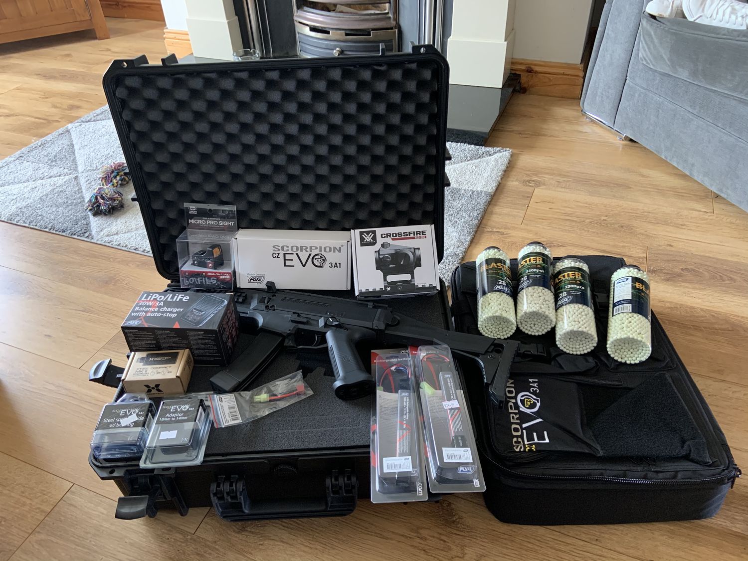 Noddy45 Posted June 24, 2020 Posted June 24, 2020 Been saving a while for this bundle - back to work now so I could buy it all for €250 - that’s what I told the misses anyhow. - Scorpion evo combo deal with extra battery and charger. - Upgraded 120 spring and steel bearing guide - Xcortech compact tracer and silencer adapter - Scorpion evo field hard case - I am a sucker for cases - it came with a canvas one but wanted this one - Vortex Crossfire Red Dot - TM micro pro sight for my FNX 45 and an Olight on the way to finish that off MikeMarden 1